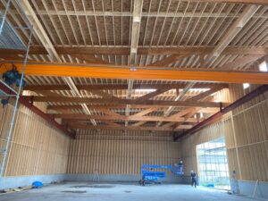 多くの事業者が懸念されるのが「木造で柱のない広い空間が作れるのか」という点です。最新の集成材技術や接合金物の発達により、現在では木造でもスパン(柱と柱の間隔)を18メートルから20メートル程度飛ばすことが可能になっています。天井高についても、トラス構造などを採用することで、フォークリフトの作業に十分な6メートル以上の空間を容易に確保できます。実際に、荷役効率を重視する配送センターや資材保管倉庫において、木造での施工事例が急速に増えています。実務的な視点で見ても、一般的な平屋倉庫であれば、木造は鉄骨造と遜色ない自由度を確保しつつ、断熱性能などの付加価値を載せやすい構造と言えます。
